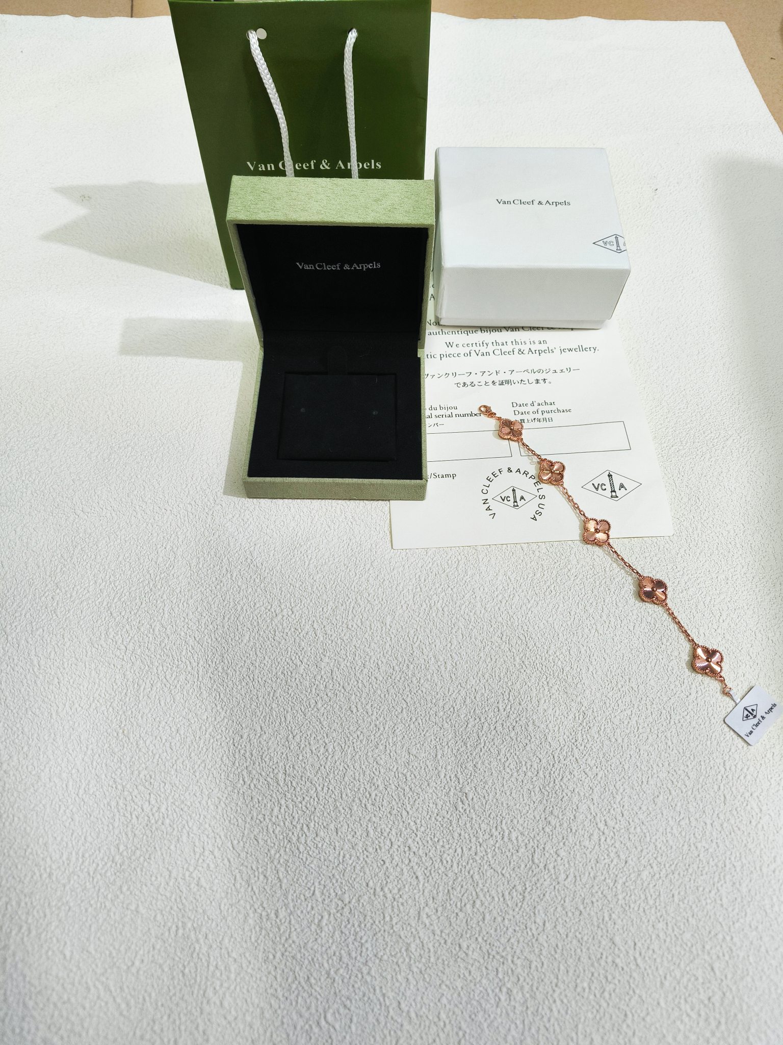 This exquisite Van Cleef & Arpels clover bracelet is a testament to timeless elegance and sophisticated design. Its delicate craftsmanship and radiant rose gold finish make it a must-have accessory for any jewelry lover.