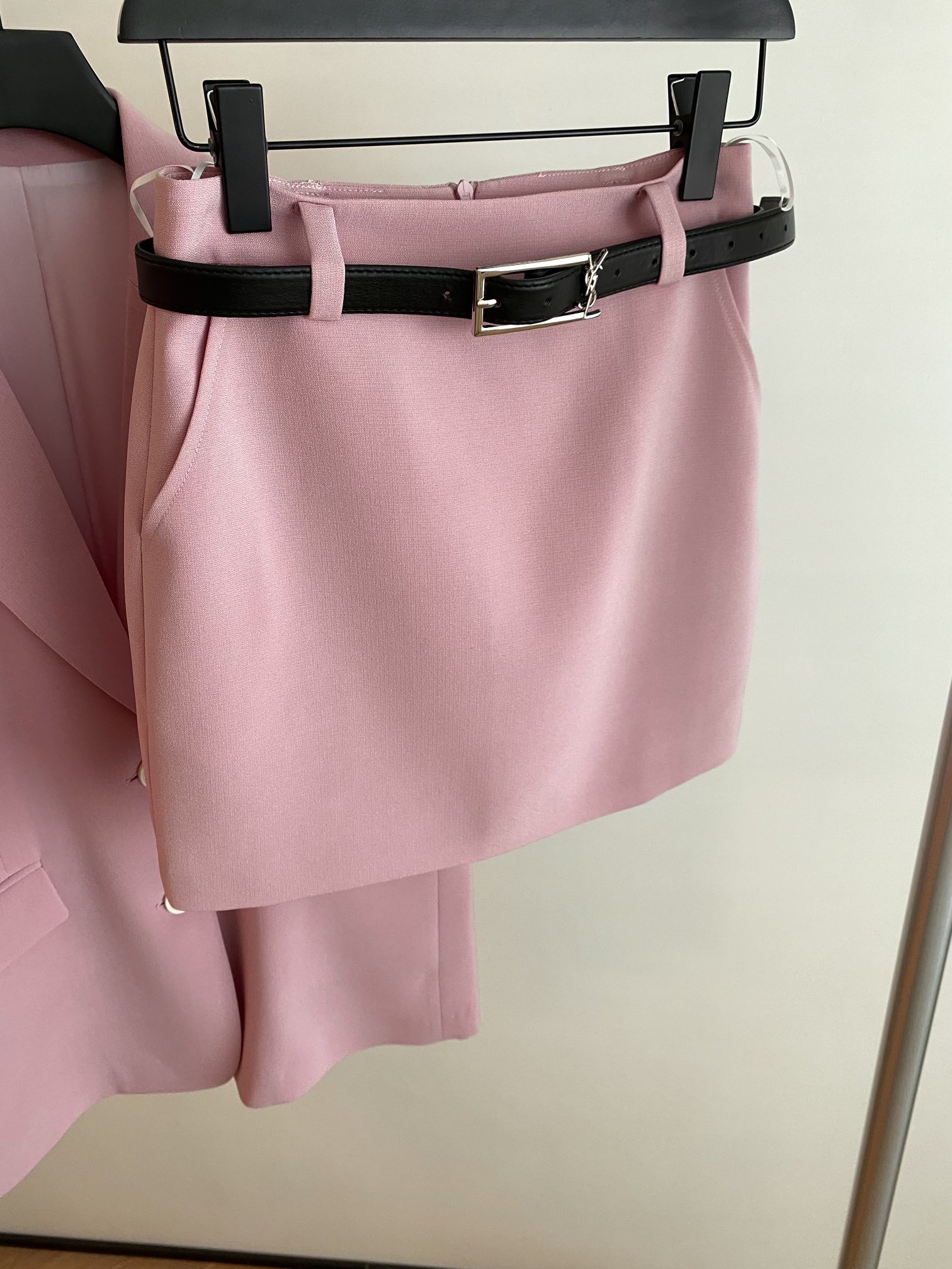 Ss23 spring and summer YSL high-end wide-version lapel embroidered letters suit jacket half-skirt suit top suit volume-shaped jacket has no restrictions on body shape, fashionable neutral style neatly cut skirt bottoms make the suit between chic neutral and jacket unification High harmony of tones A set of 2 colors and 3 sizes can be separated Jacket A8370 Skirt A8290