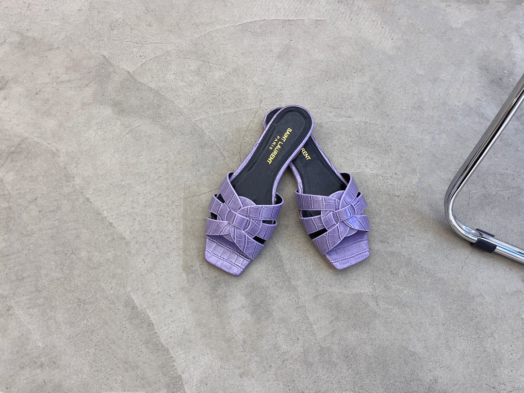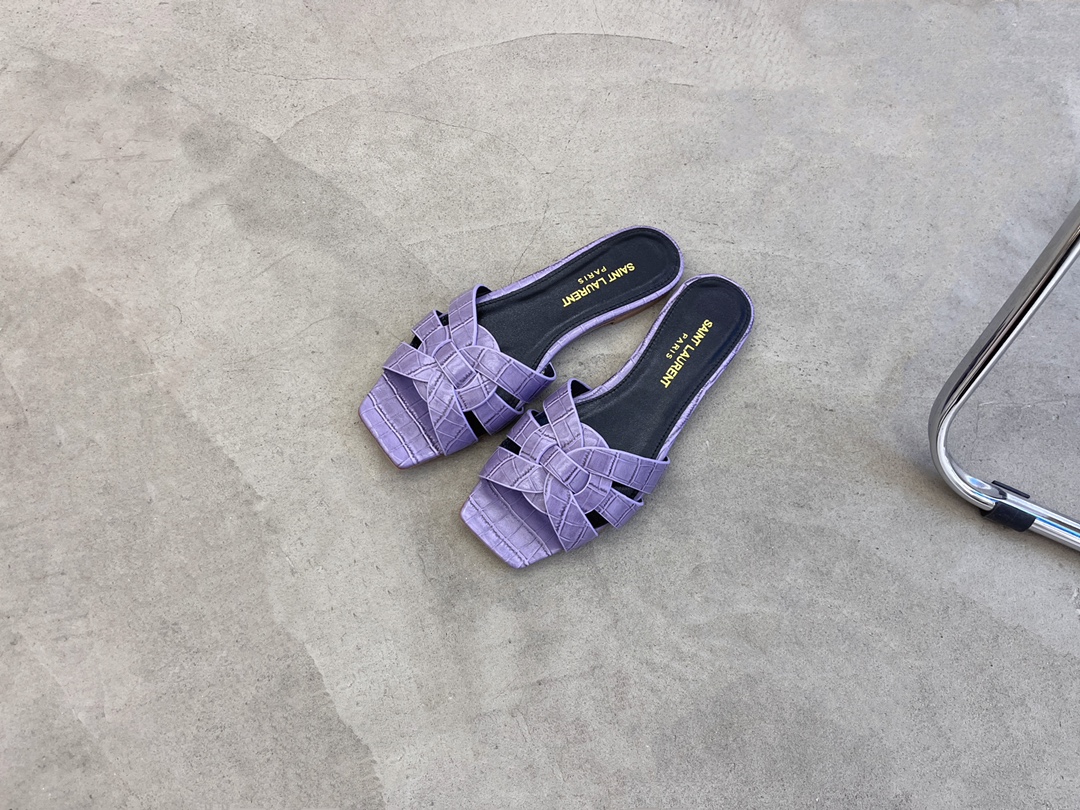 Yves Saint Laurent Leather Shoes Slippers Weave Cowhide Genuine Leather Patent