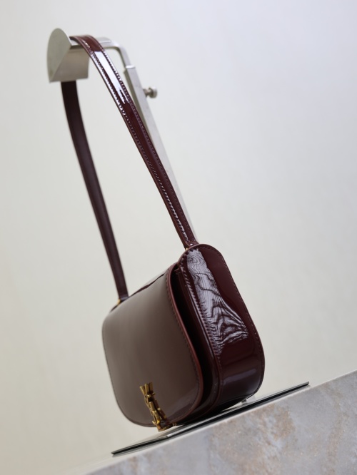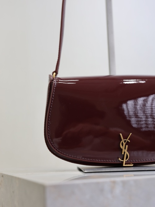 Tags: Burgundy Patent Leather Bag, Cassandra Closure Bag, Designer Shoulder Bag, Mini Shoulder Bag, YSL Shoulder Bag