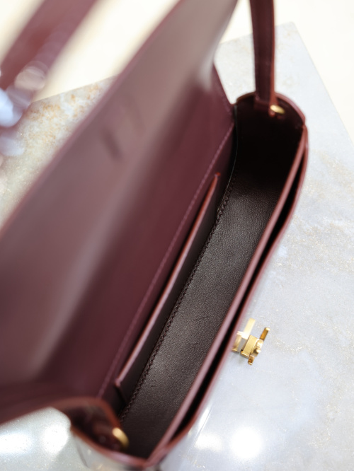The burgundy patent leather is gorgeous and the bag is so well-made. I get compliments every time I wear it!