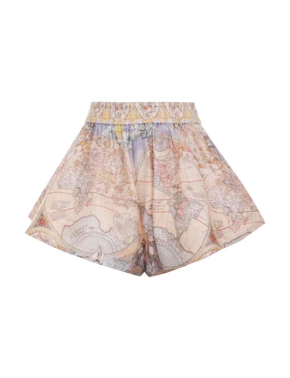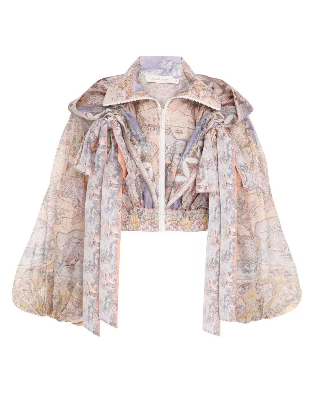 Australian niche brand Zimmermann๏ฝlinen printed lantern sleeve hooded topโshorts